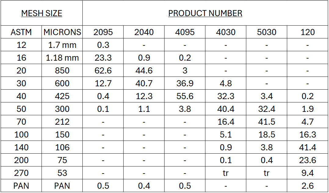 All GRANUSIL® grades are processed and sized under rigid SPC and UNIMIN QIPSM statistical and quality assurance programs. The result is chemical purity and consistently uniform particle size distributions for predictable performance in either manufactured or site-prepared products
